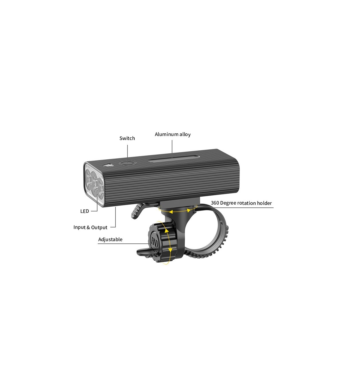 Le support pivotant permet d’ajuster la lampe LED selon la direction souhaitée : Vers l’avant, le sol ou les côtés.