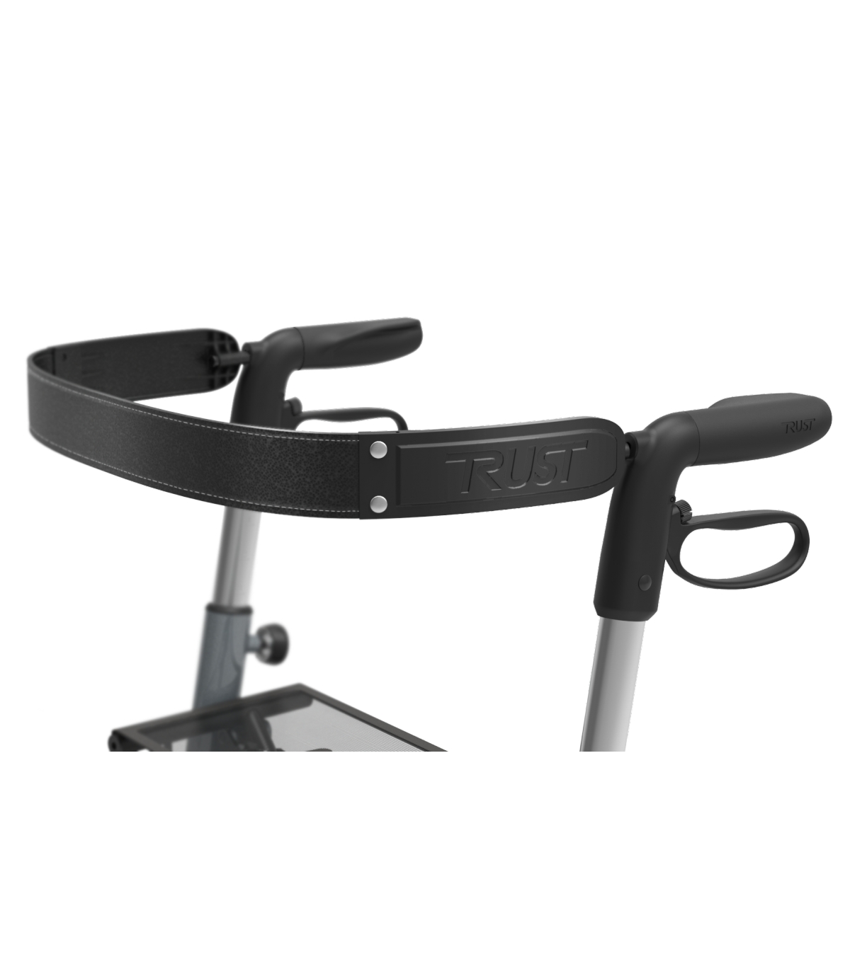 Le dossier en cuir simili s'attache facilement aux poignées de votre rollator.