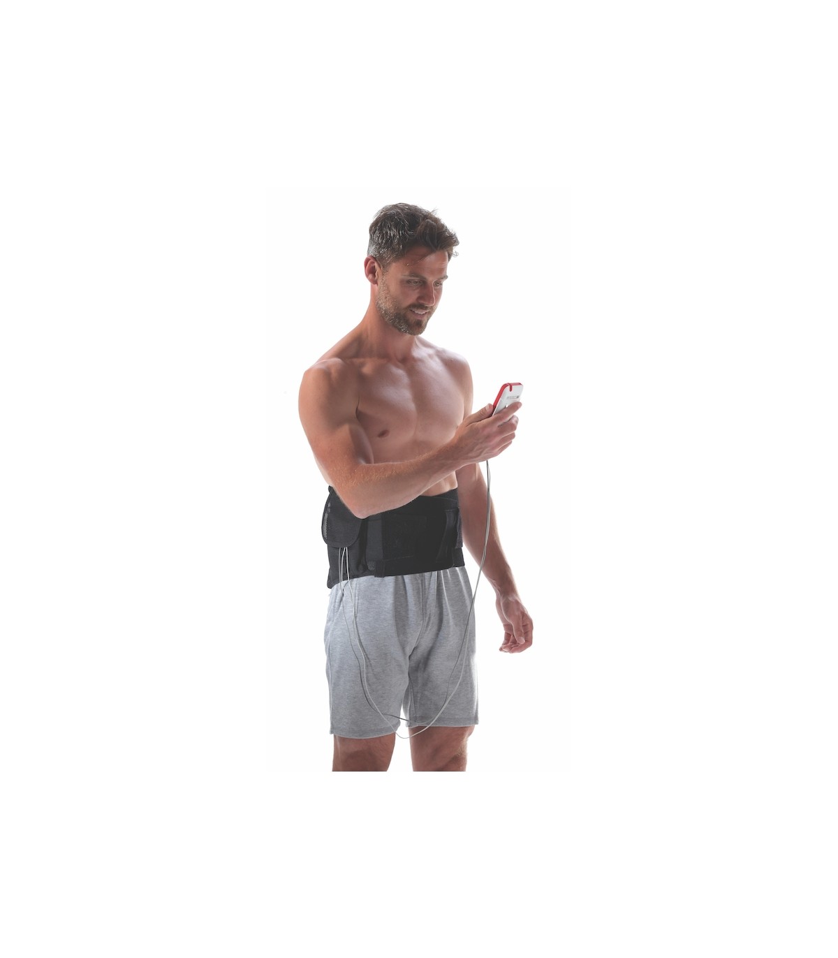 Vous ne serez pas gêné par les câbles avec fiche banane car ils passent dans la ceinture pour atteindre les électrodes placées au niveau des lombaires.