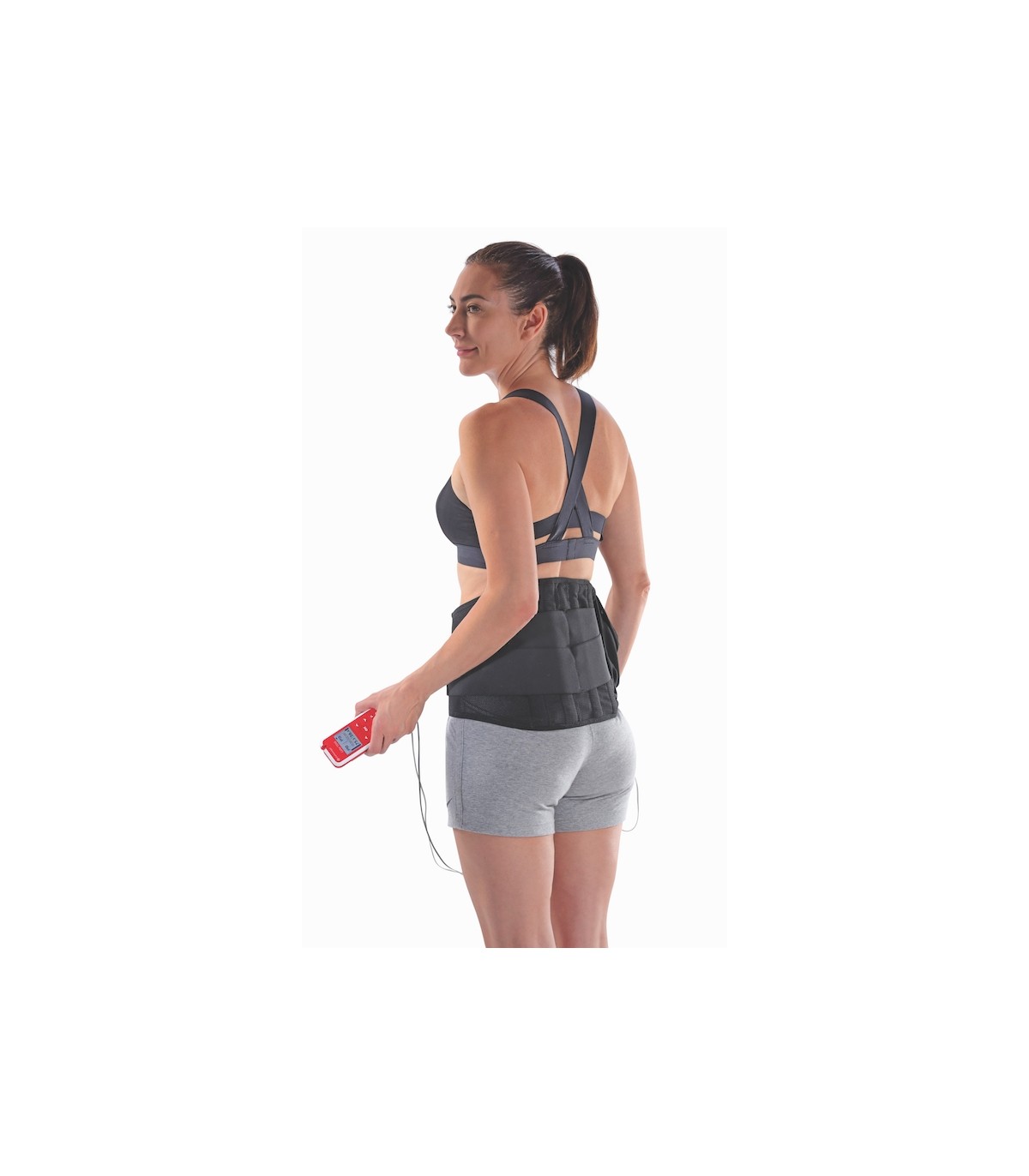 - Couplée à un électrostimulateur, elle permettra une stimulation ciblée par neurostimulation électrique transcutanée TENS ou travail neurosmusculaire NMES permettant une prise en charge des indications de type lombalgie aiguë ou chronique, lombosciatalgie.
