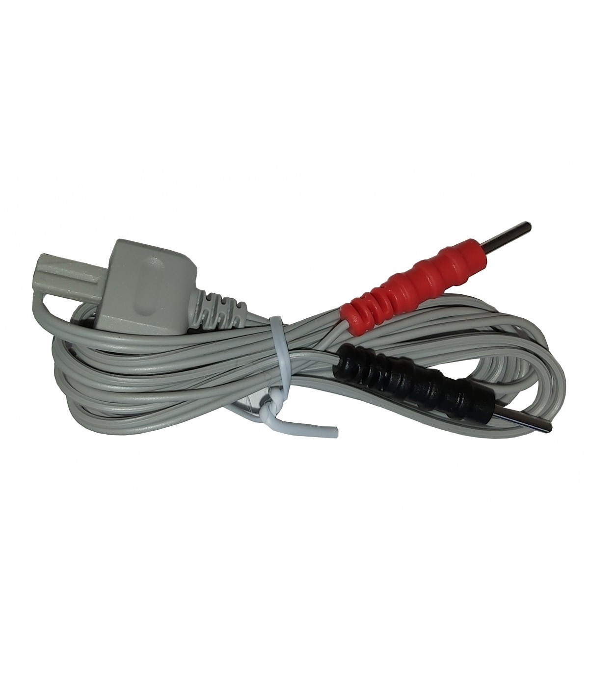 Le câble est équipé de connecteurs à fiches banane 2 mm, conformes à la norme standard des appareils TENS tels que le neurostimulateur transcutané Cefar TENS, assurant une connexion fiable et sécurisée avec les électrodes.