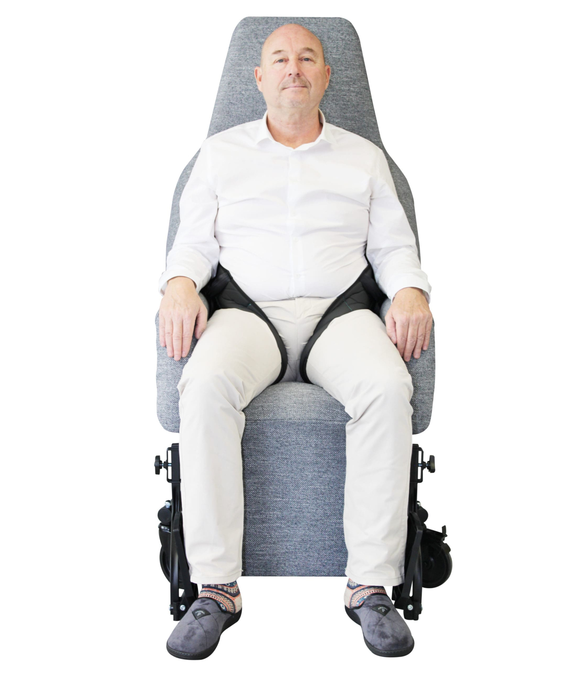 La ceinture Birdy disponible dans nos accessoires permet un maintien pelvien tout en s'appuyant sur les adducteurs et non sur la zone intime de la personne.