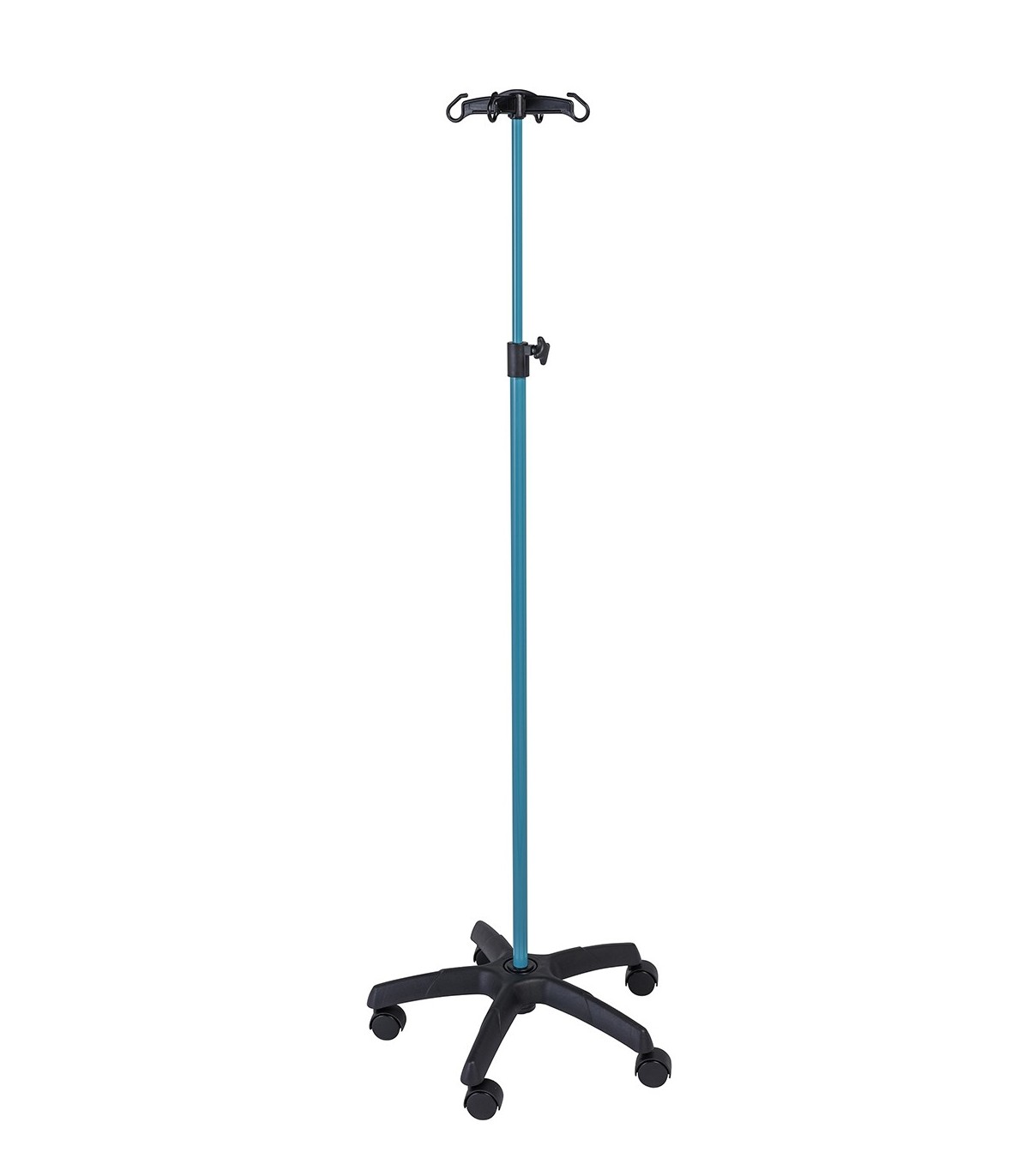 Avec ses 4 crochets supportant nutriments ou poches à perfusion, le porte sérum est équipé de roulettes pour accompagner sans effort le patient quand il doit se déplacer.