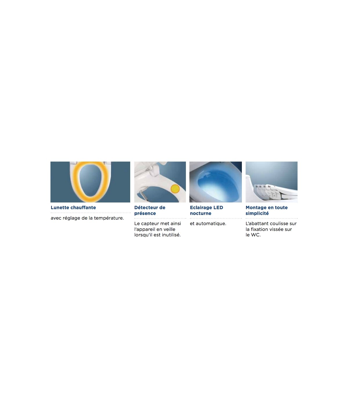Un éclairage LED nocturne est disponible sur l'abattant de toilette afin d‘apporter de la visibilité la nuit.