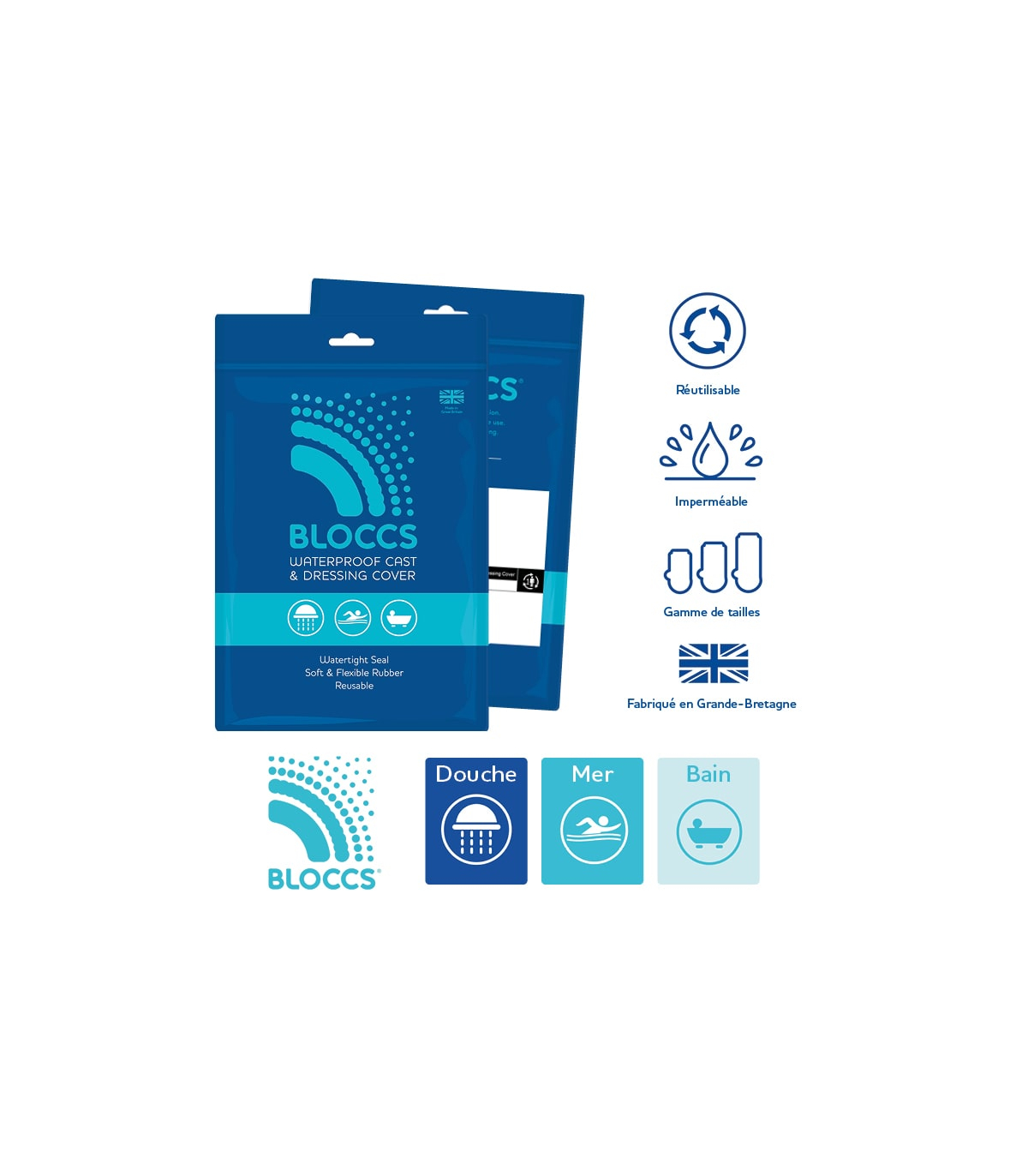 Le protège plâtre enfant et adulte Bloccs est conçu pour protéger efficacement votre plâtre ou votre pansement de l'eau. Il est réutilisable et submersible pour une utilisation sous la douche, dans le bain, à la piscine mais aussi à la plage. De plus, la protection Bloccs s'adaptera parfaitement à la taille de votre plâtre que ce soit au bras, à la jambe, au coude ou au genou.