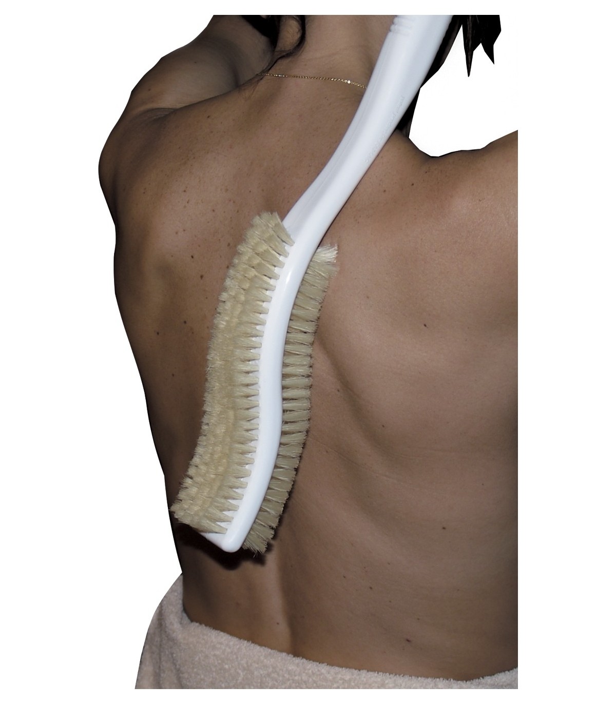 - Ou encore la brosse à dos ergonomique pour la douche avec manche courbé.