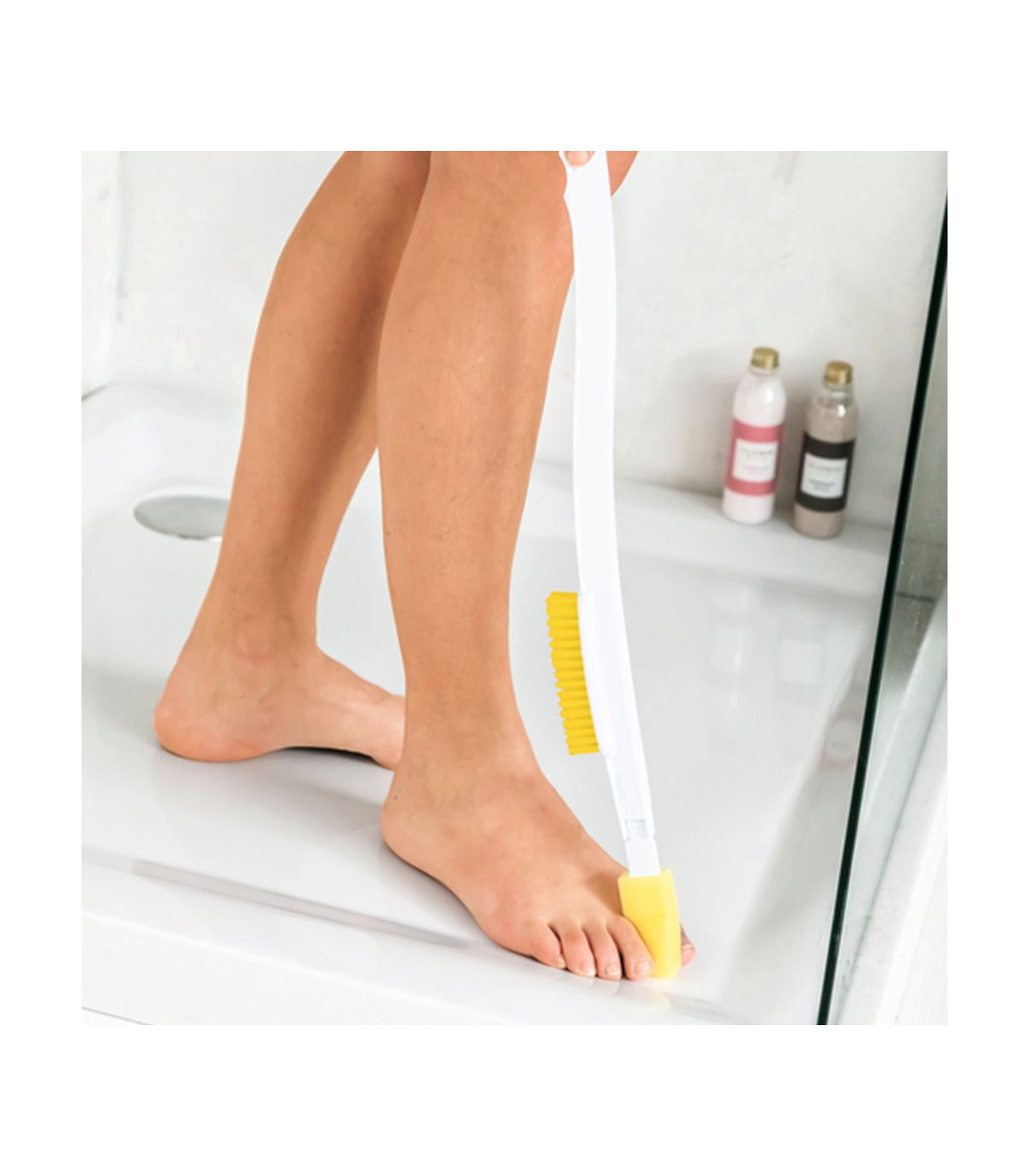 L'éponge de la brosse pédicure permet de nettoyer facilement les interstices des orteils en douceur.