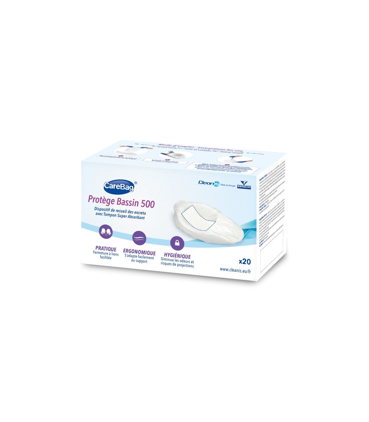Le protège bassin de lit CareBag Cleanis est composé d'un sac et d'un tampon super absorbant, conçu pour s'adapter à tous les types de bassins de lit. Ce dispositif médical à usage unique a pour objectif de prévenir les infections nosocomiales.