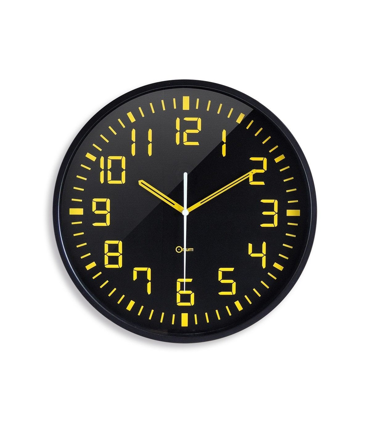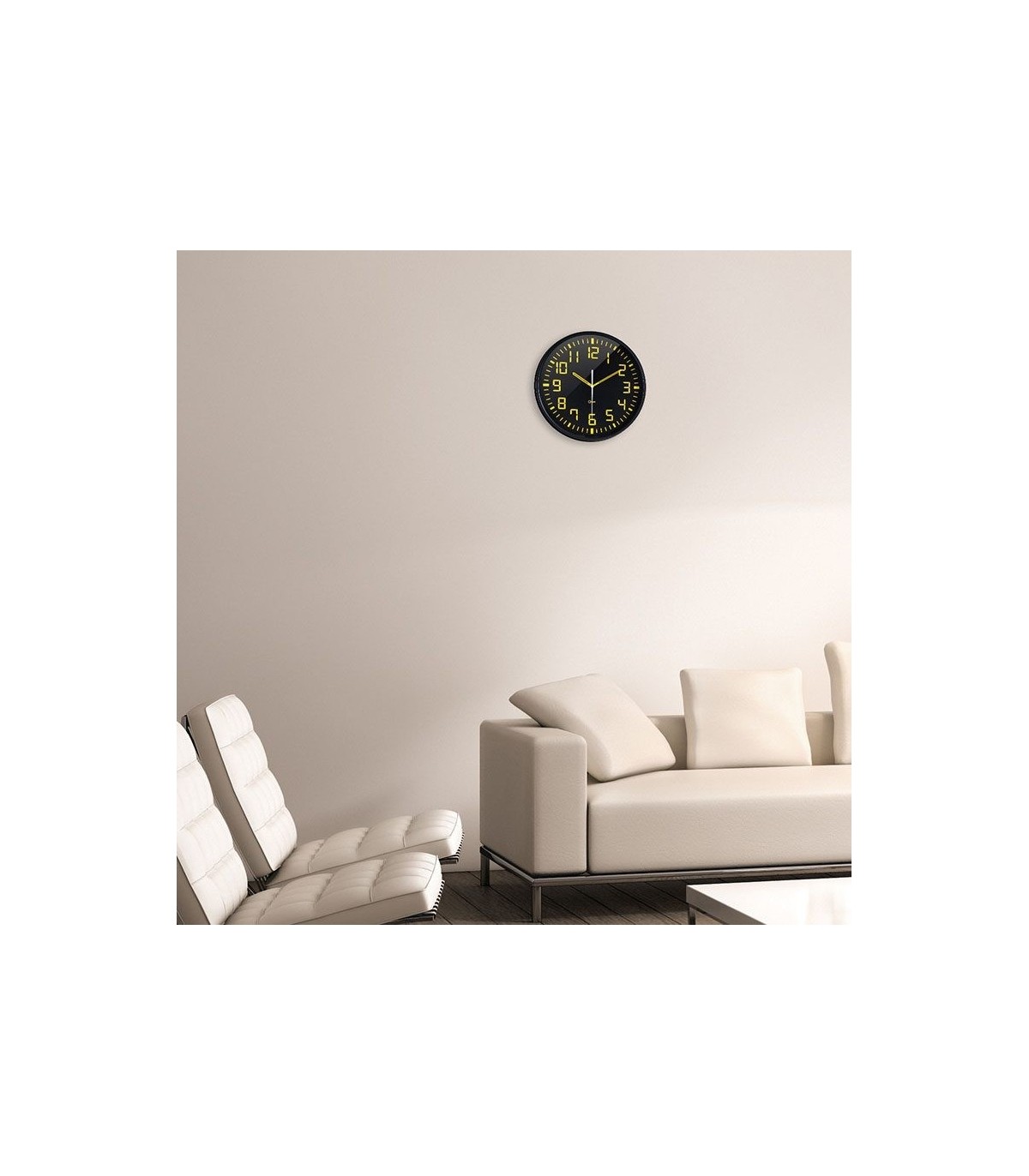 L'horloge analogique est équipée d'un cadran noir et de chiffres jaunes pour un parfait contraste.
