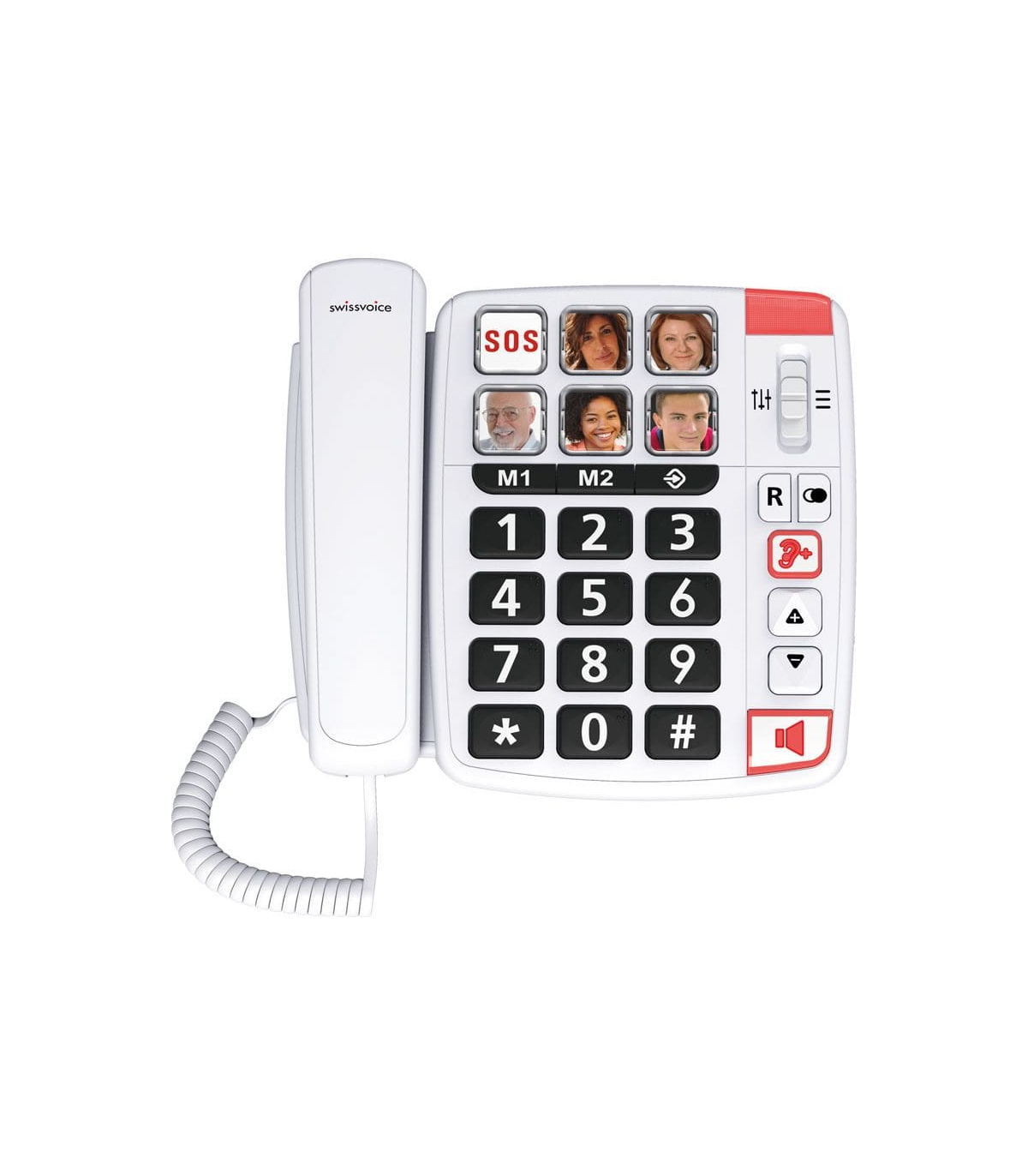 Le téléphone grosses touches Swissvoice Xtra 1110 permet aux personnes âgées et aux personnes malvoyantes d'appeler facilement un proche. Il est possible de pré-enregistrer des numéros de téléphone en face des photos afin que l'utilisateur puisse les appeler directement sans avoir à taper leur numéro.
