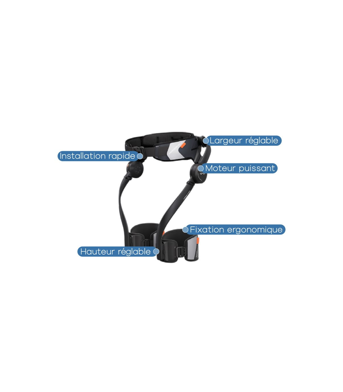 De plus, la largeur et la hauteur réglables permettent d’adapter parfaitement l'exosquelette HyperShell à la morphologie de l’utilisateur, pour un confort et une utilisation optimale.