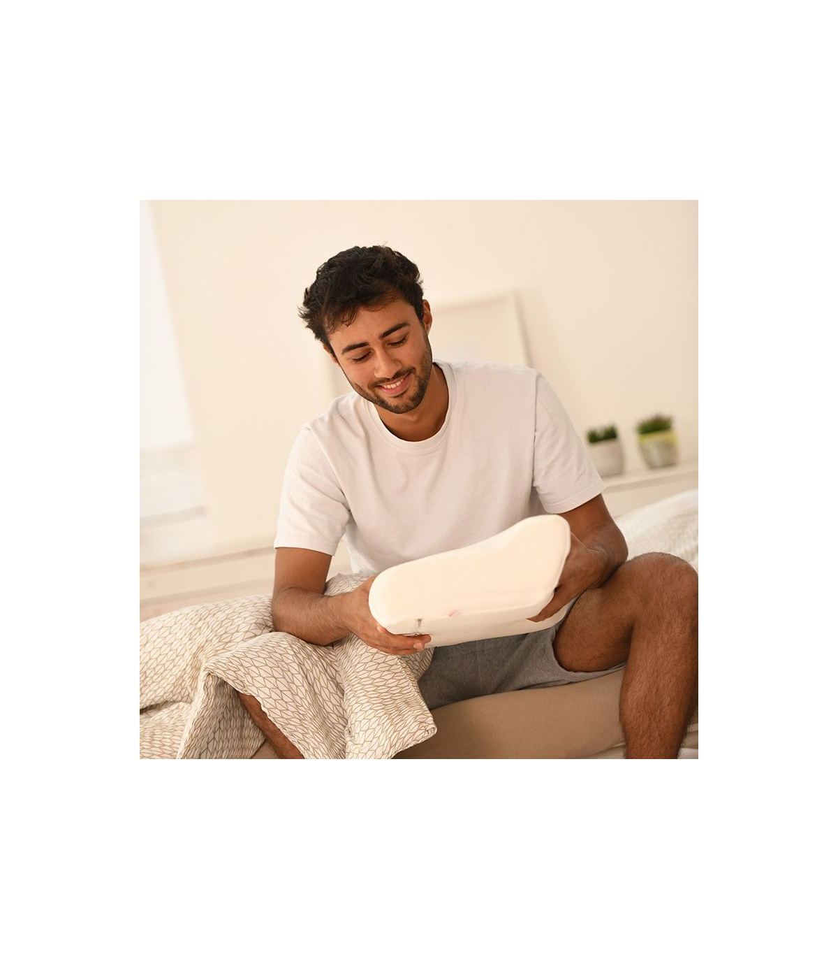 Sa forme particulière vous permet de retrouver un bon alignement de la tête avec le reste de la colonne vertébrale. Cela va favoriser un sommeil de qualité et soulager les douleurs dorsales et cervicales.