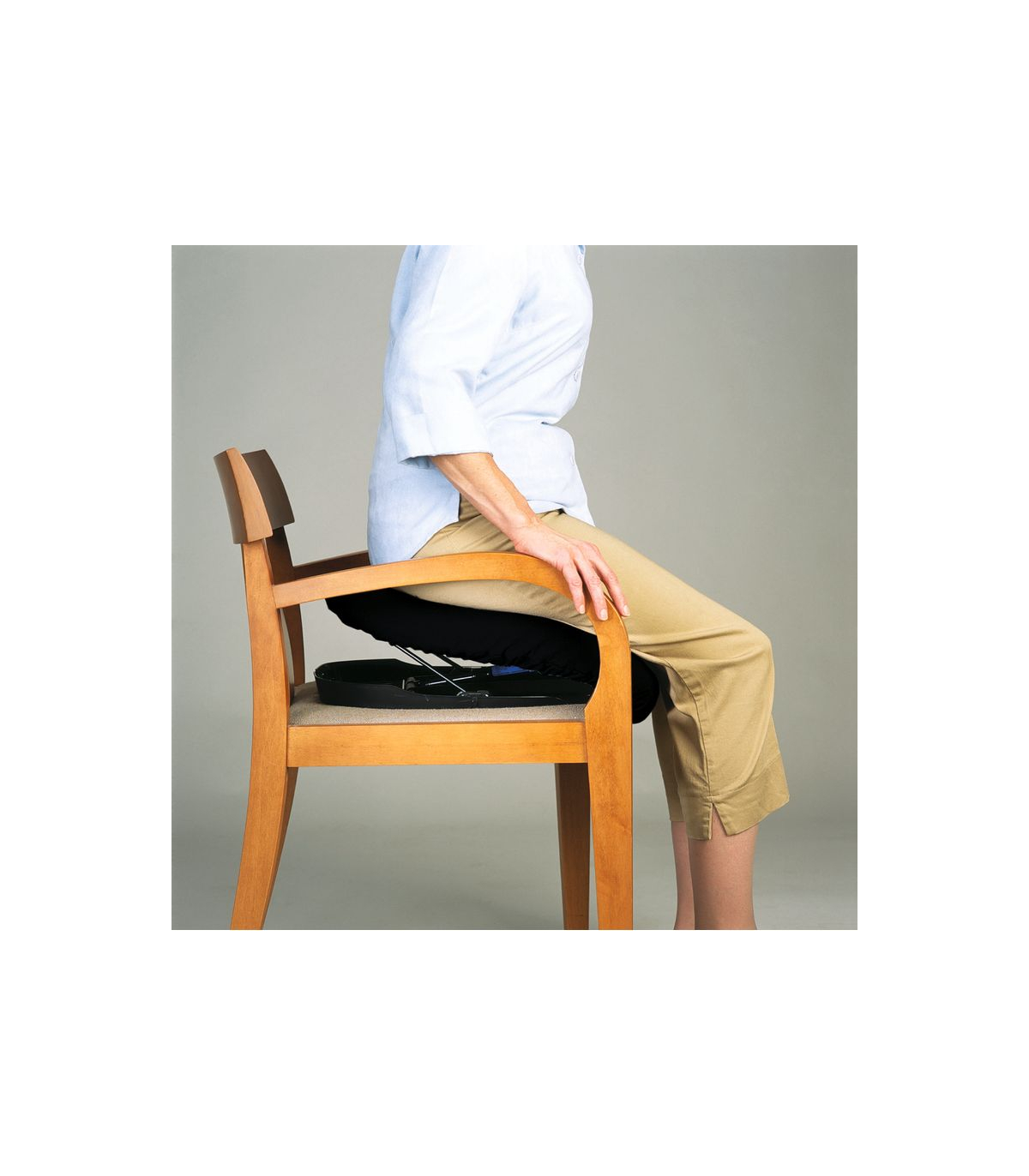 Le coussin d'aide à la levée est équipé d'un mécanisme hydro-pneumatique qui permet de se déployer en douceur lorsque l'utilisateur commence à se lever du siège. Ainsi vous n'aurez plus de difficulté pour vous relever de votre fauteuil, canapé ou chaise.