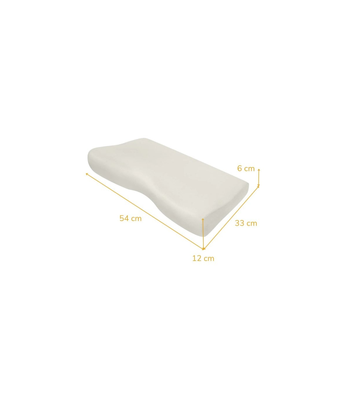 Le coussin médical Inphysio comporte des dimensions adaptées de 54 × 33 × 12/6 cm pour apporter une hauteur dégressive idéale pour accueillir la tête et soutenir la nuque, quelle que soit la position de sommeil, sur le dos ou sur le côté.