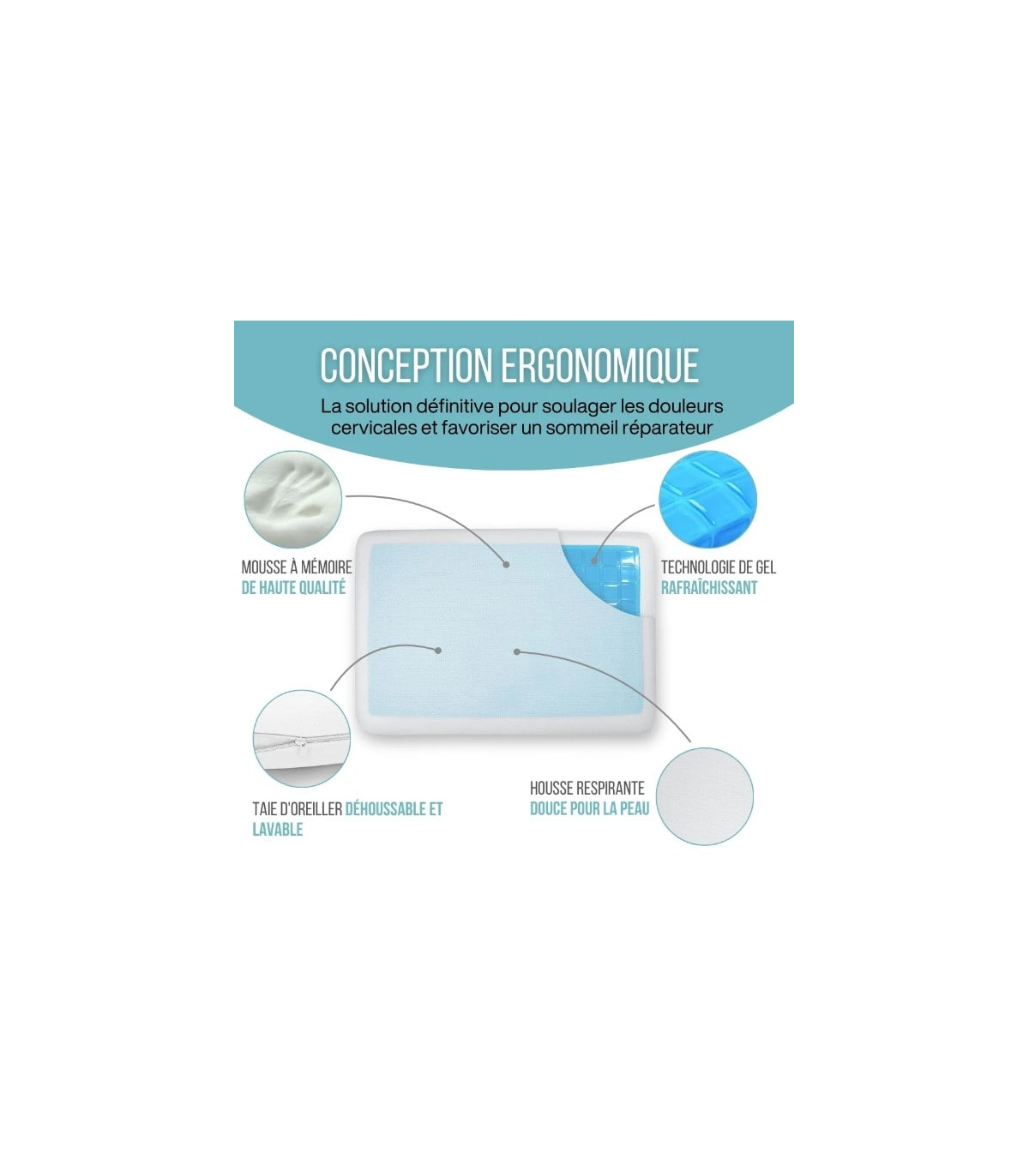 Oreiller à mémoire de forme avec gel rafraîchissant Confort Gel