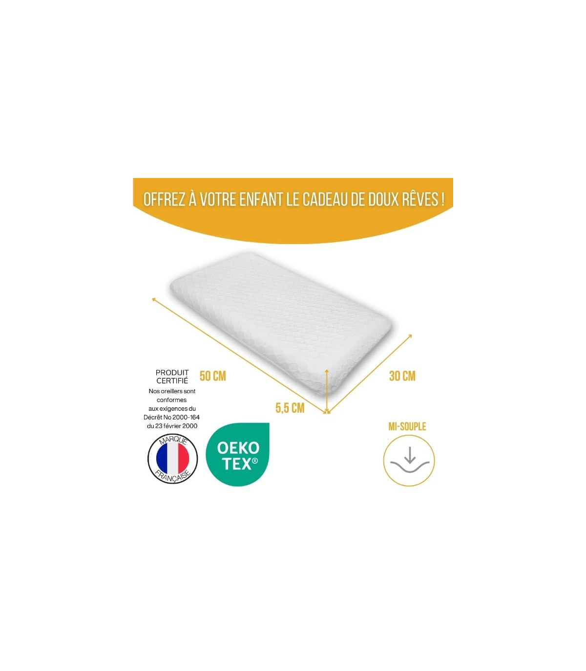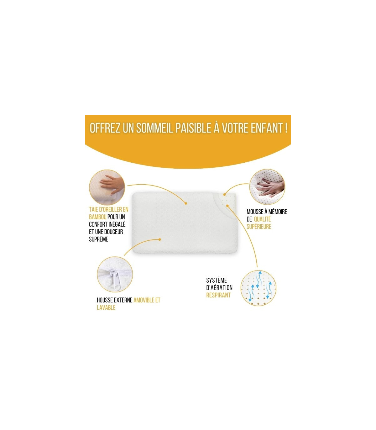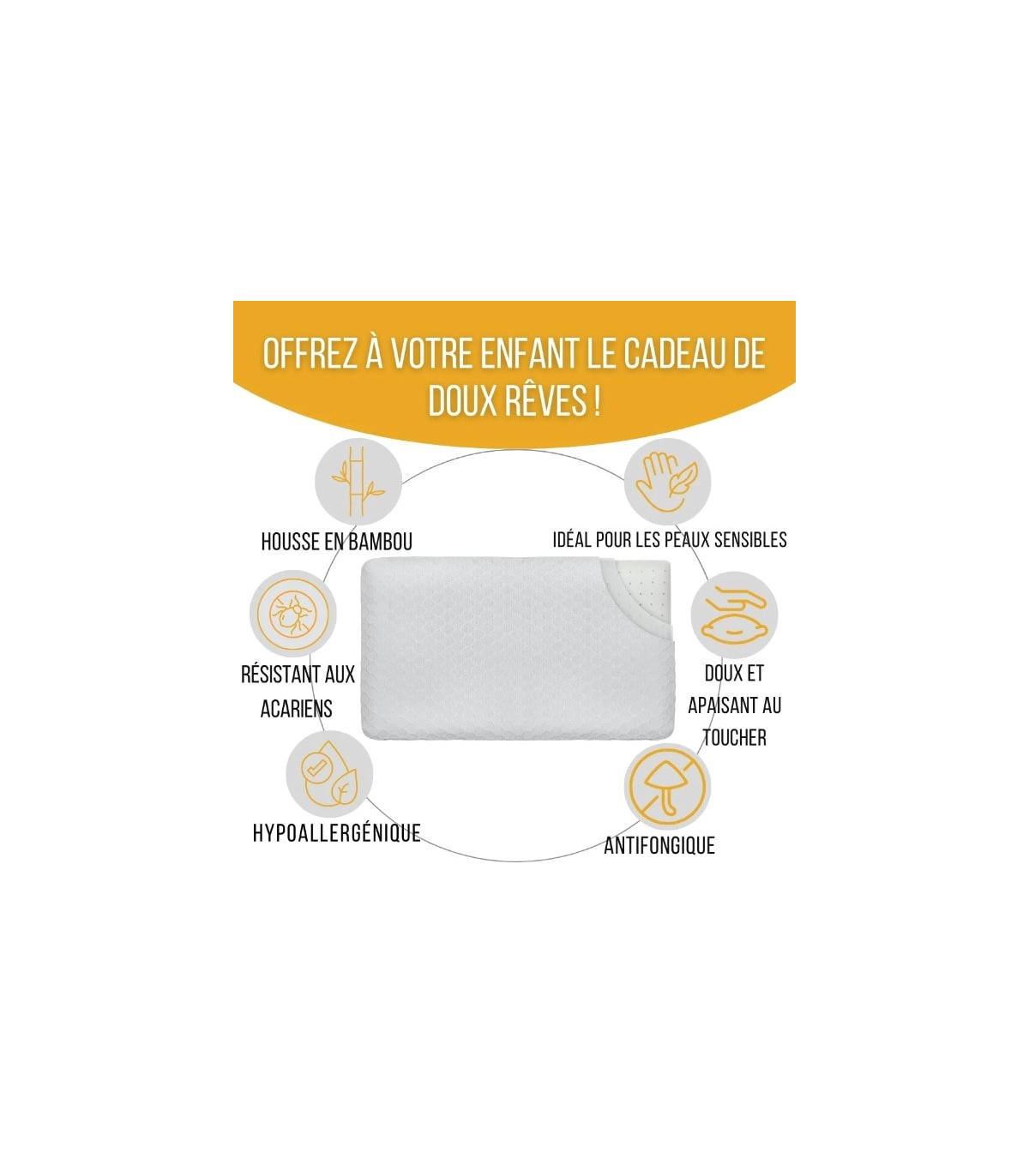Pour vous assurer que cet oreiller à mémoire de forme répond aux besoins de votre enfant, voici un aperçu détaillé de ses détails techniques.