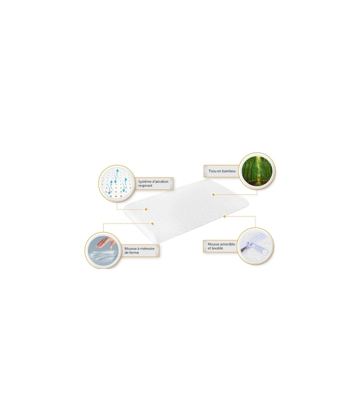 Les détails techniques de l'oreiller enfant à mémoire de forme perforé bambou Inphysio