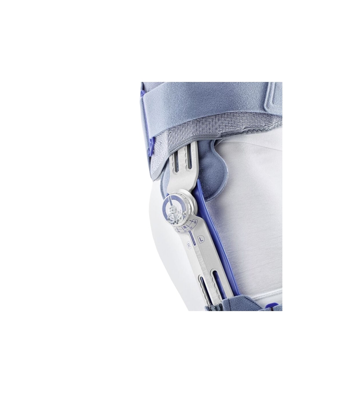 L'orthèse de hanche SofTec Coxa est équipée d'une articulation monocentrique qui permet de prendre en charge dans la position d'adduction / d'abduction requise individuellement et limite les mouvements d'extension et de flexion.