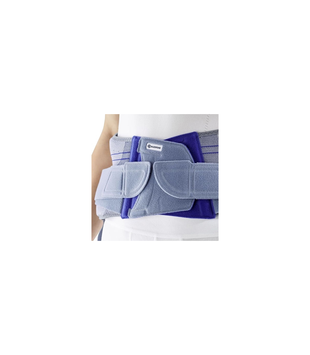 Celle-ci comporte un soutien du bassin en matière plastique, intégré dans le tricot pour assurer un meilleur positionnement de l'attelle.