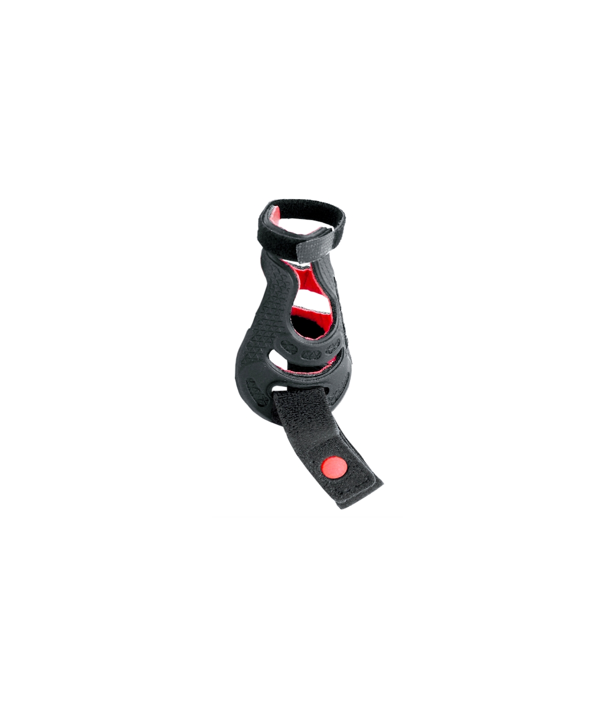 La sangle avec bouton d'arrêt "Strap-stop" ainsi que la boucle au poignet permet de serrer l'attelle pour une immobilisation optimale.