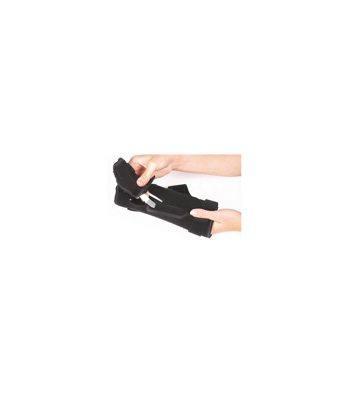 Elle est munie d'une éclisse palmaire en aluminium ergonomique et semi-rigide pour contrôler la flexion.