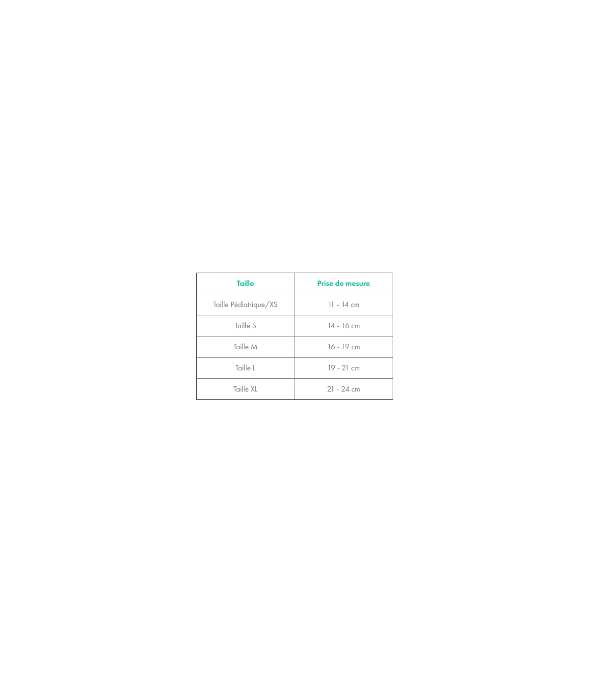 | Taille Pédiatrique/XS | 11 - 14 cm |
