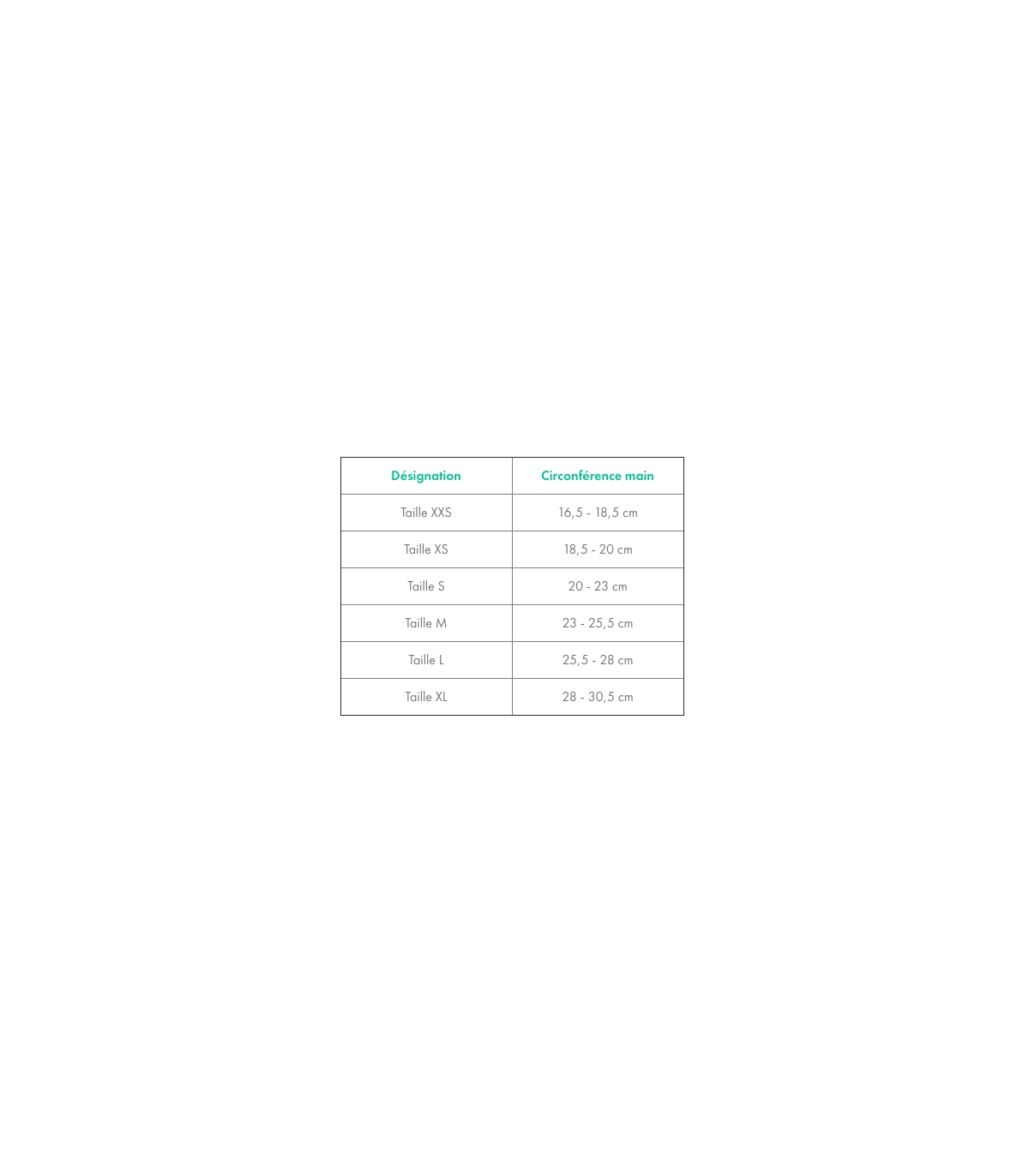 | Désignation | Circonférence main |