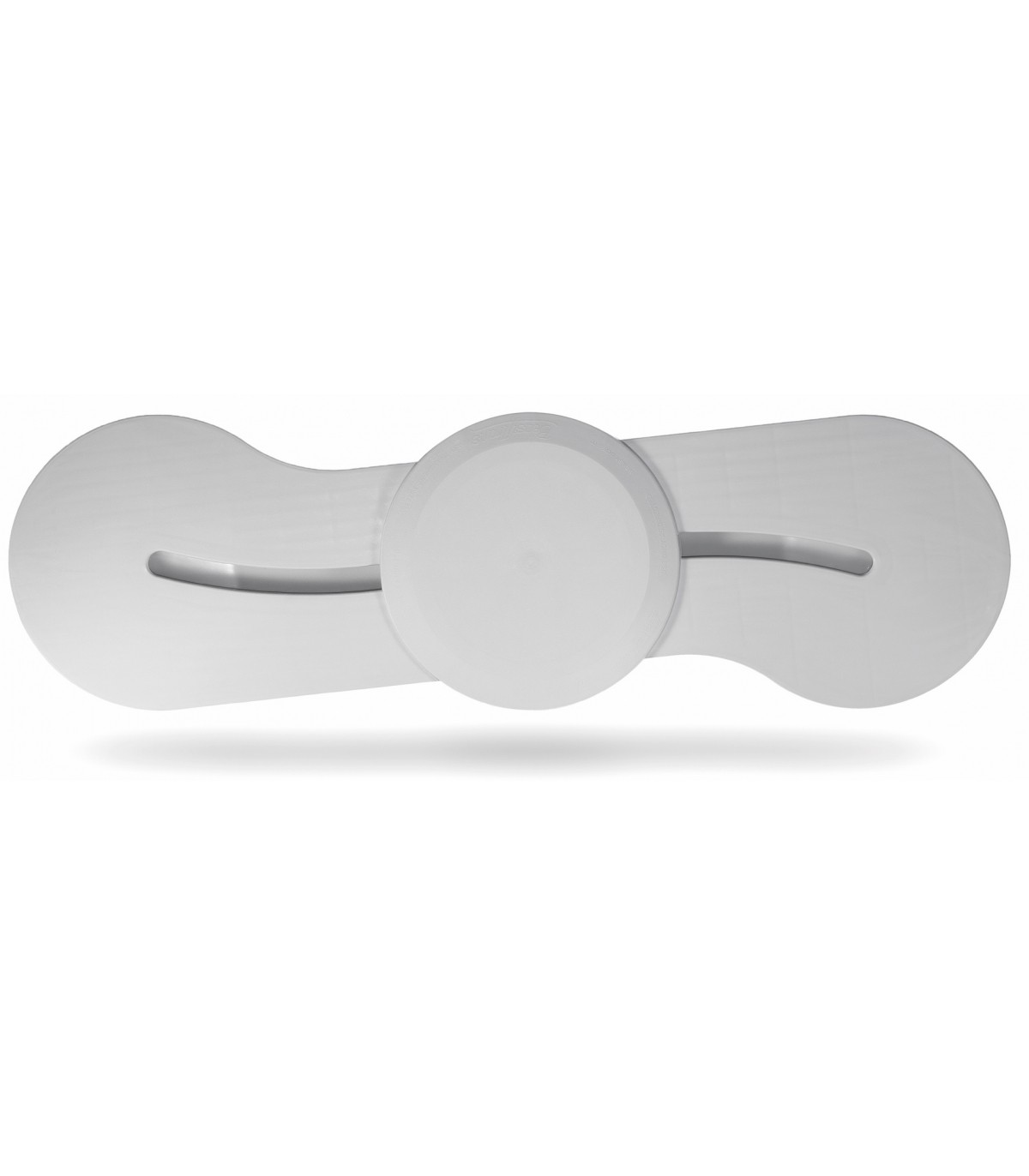 La planche Beasytrans de couleur blanche comporte un siège circulaire qui tourne librement et se déplace le long de la planche, ce qui permet un transfert latéral en douceur en limitant les frottements sur la peau.