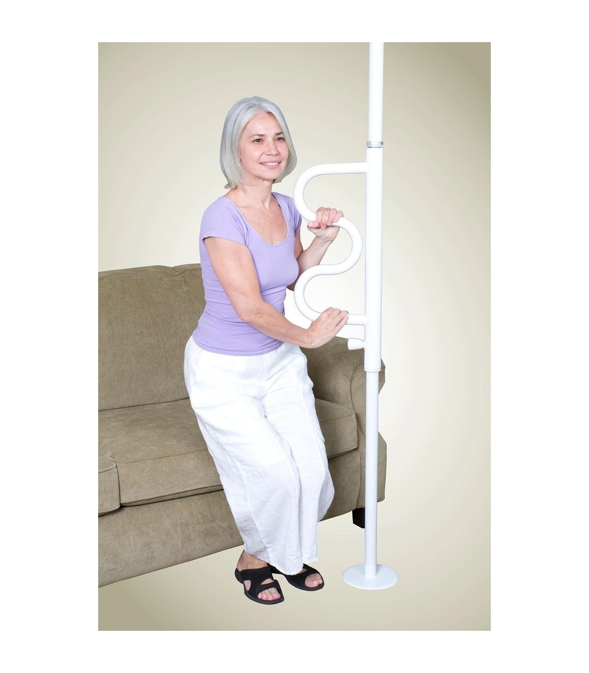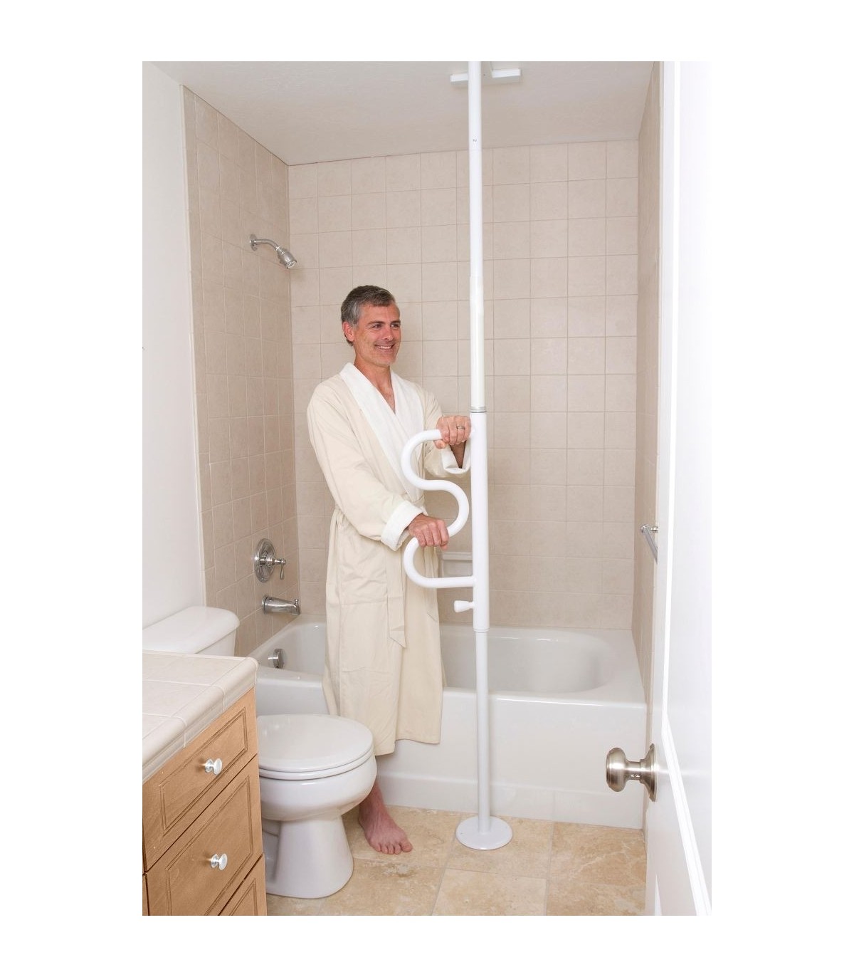 La barre d'appui verticale sol plafond amovible Curve offre à l'utilisateur un appui stable et sécurisant pour lui permettre de se relever facilement, en particulier dans les lieux où l’équilibre peut être précaire, comme :
