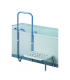 - Châssis en tubes acier soudés, blocage par butée avec vis inox, manchette poignée en PVC, marche en polypropylène