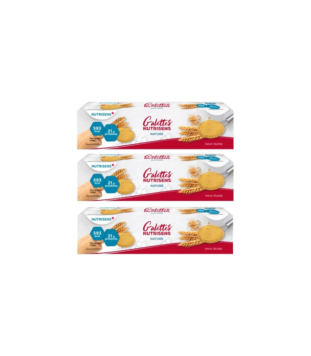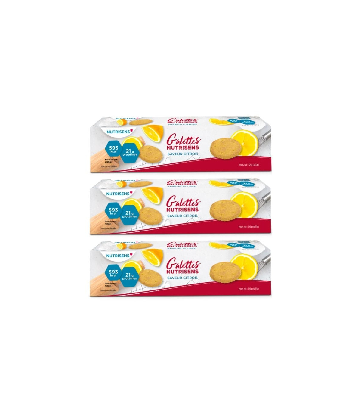 Les galettes hyperprotéinées Nutrisens sont des biscuits hyperprotéinés qui répond aux besoins nutritionnelles des personnes âgées. Cette denrée alimentaire est destinée à des fins médicales spéciales pour lutter contre la dénutrition.