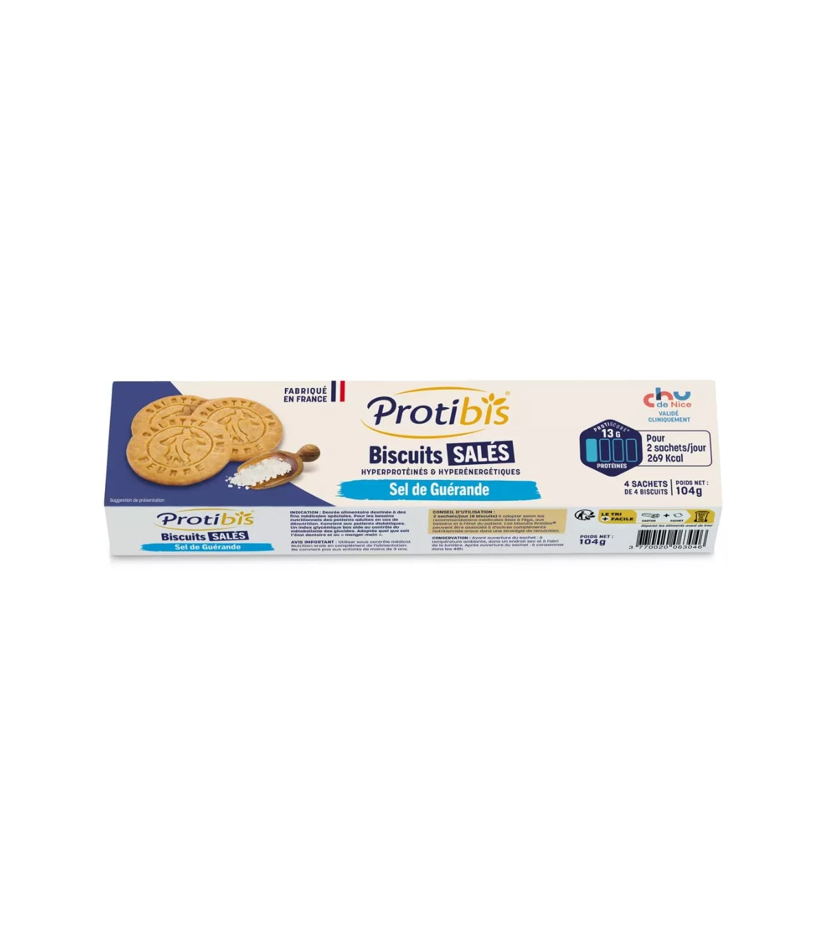 Avec 13 g de protéines et 269 kcal pour deux sachets, les biscuits Protibis sont un apport nutritionnel complet et concentré, parfaitement adapté aux besoins des patients dénutris. Riches en protéines de lait, en beurre et en farine de blé, ils soutiennent la reconstruction musculaire et le bon fonctionnement du corps, dans le cadre de soins de santé encadrés. Ils s’intègrent aisément à un programme de renutrition orale, notamment lorsqu’une consommation de produits hyperprotéinés liquides est difficile ou mal tolérée.