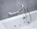 On peut également utiliser une barre d'appui courbée pour se tirer lorsqu'on se relève du bain ou pour se tenir lorsqu'on prend une douche debout.