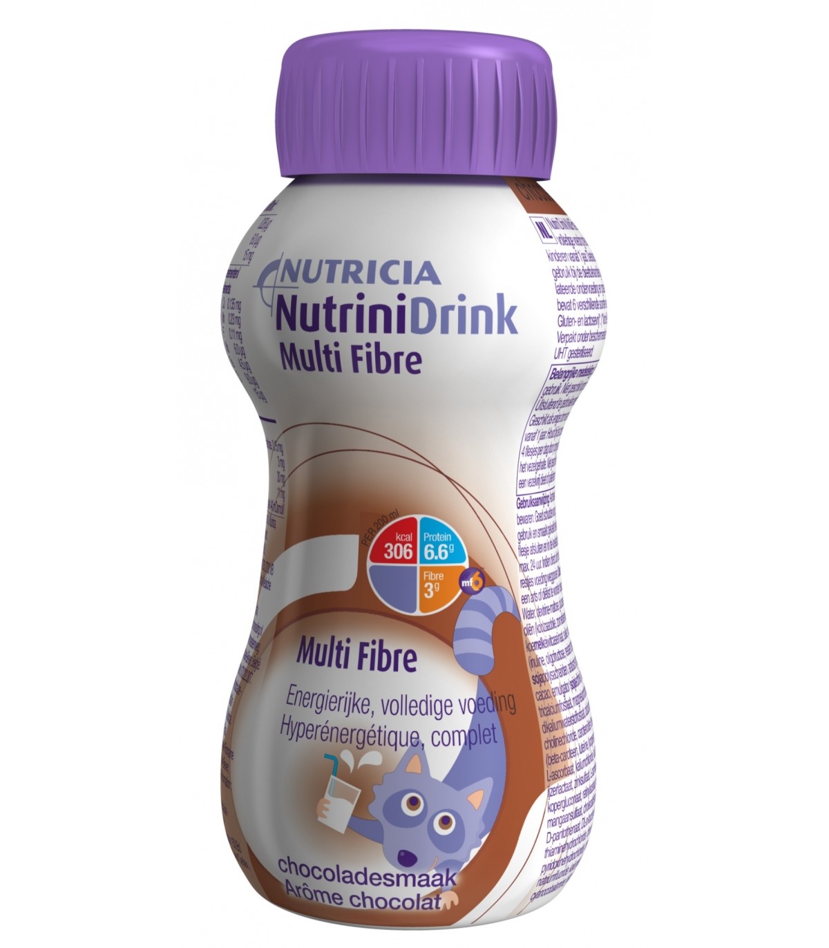 La boisson nutritionnelle Nutrinidrink Multi Fibre pour enfant est hypercalorique et hyperprotéinée puisqu'elle apporte 306 kcal et 6,6 g de protéines par bouteille de 200 ml.