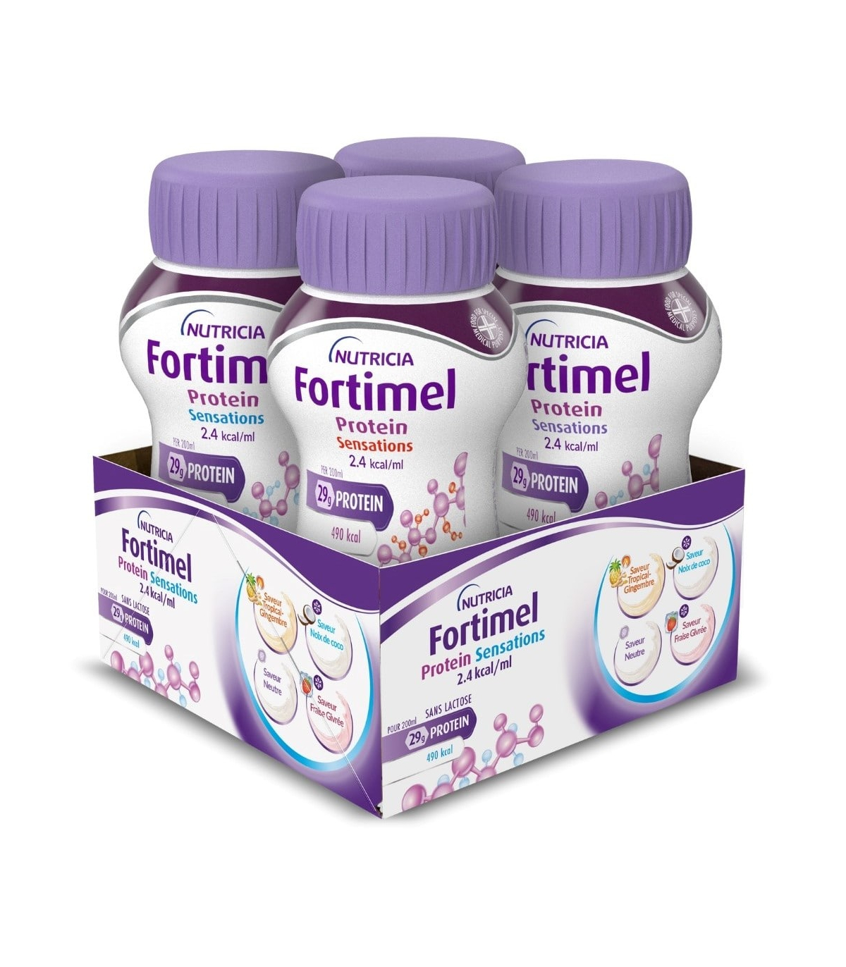 En outre, le pack multi-saveurs Fortimel Protein Sensation se compose de 4 saveurs: