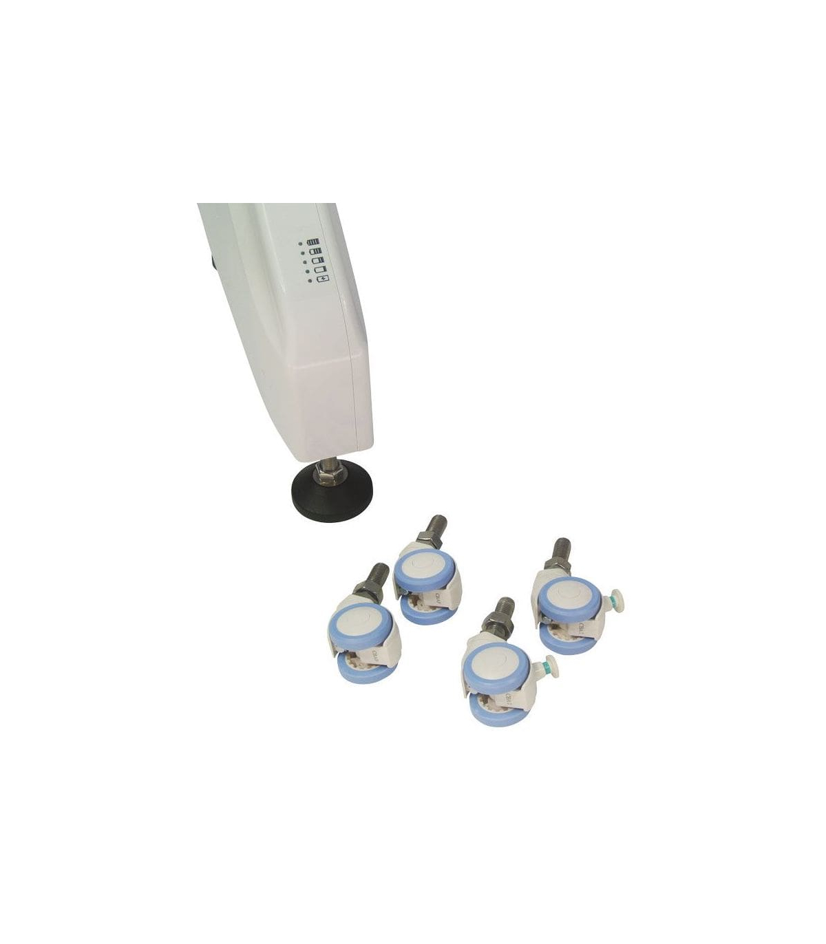 Le siège élévateur de toilettes Lofoten est livré avec un kit de 4 roulettes dont 2 avec freins. Les roues ne sont pas obligatoires. En effet, vous pouvez installer le fauteuil sur les 4 pieds fixes ou les remplacer par le kit roulettes pour le rendre mobile.