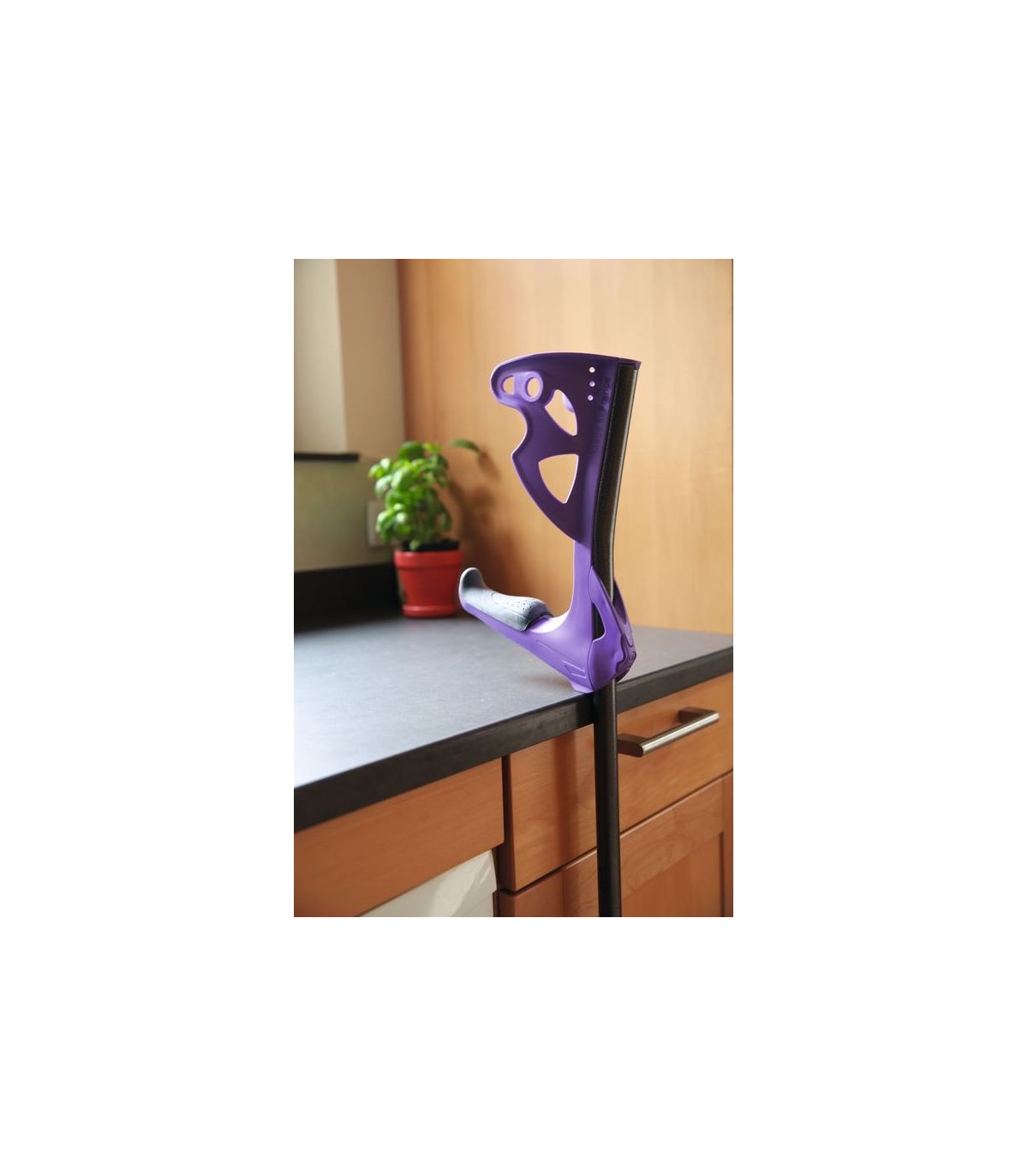 Pour apporter davantage de confort à l'utilisateur, la béquille est équipée d'un appui au niveau de la main et de l'avant-bras. En outre, la poignée est fabriquée d'une matière double épaisseur, souple, doux et antidérapant.