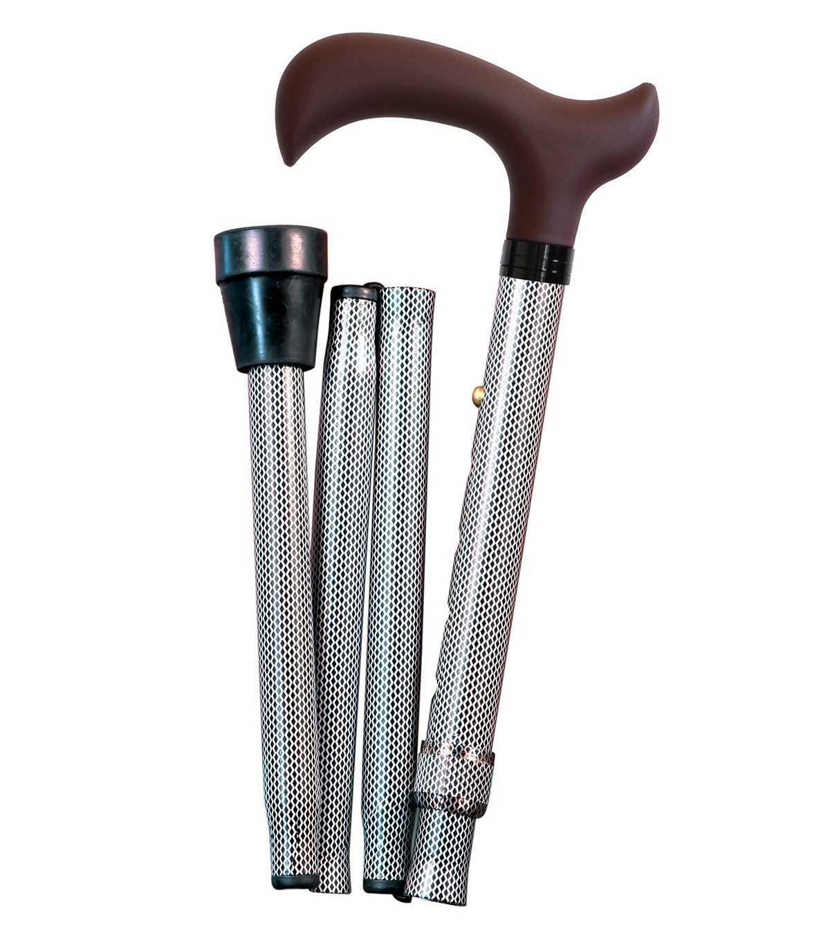 La canne de marche pliante Derby Fashion comporte une poignée derby pour une meilleure prise en main.