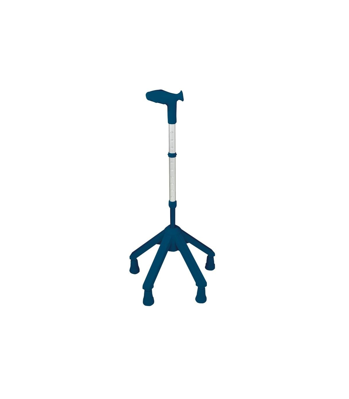 La canne quadripode est équipée de 4 pieds afin de procurer une plus grande stabilité durant la marche. Elle est fréquemment utilisée dans un cadre de la rééducation et s'avère très pratique dans les escaliers.