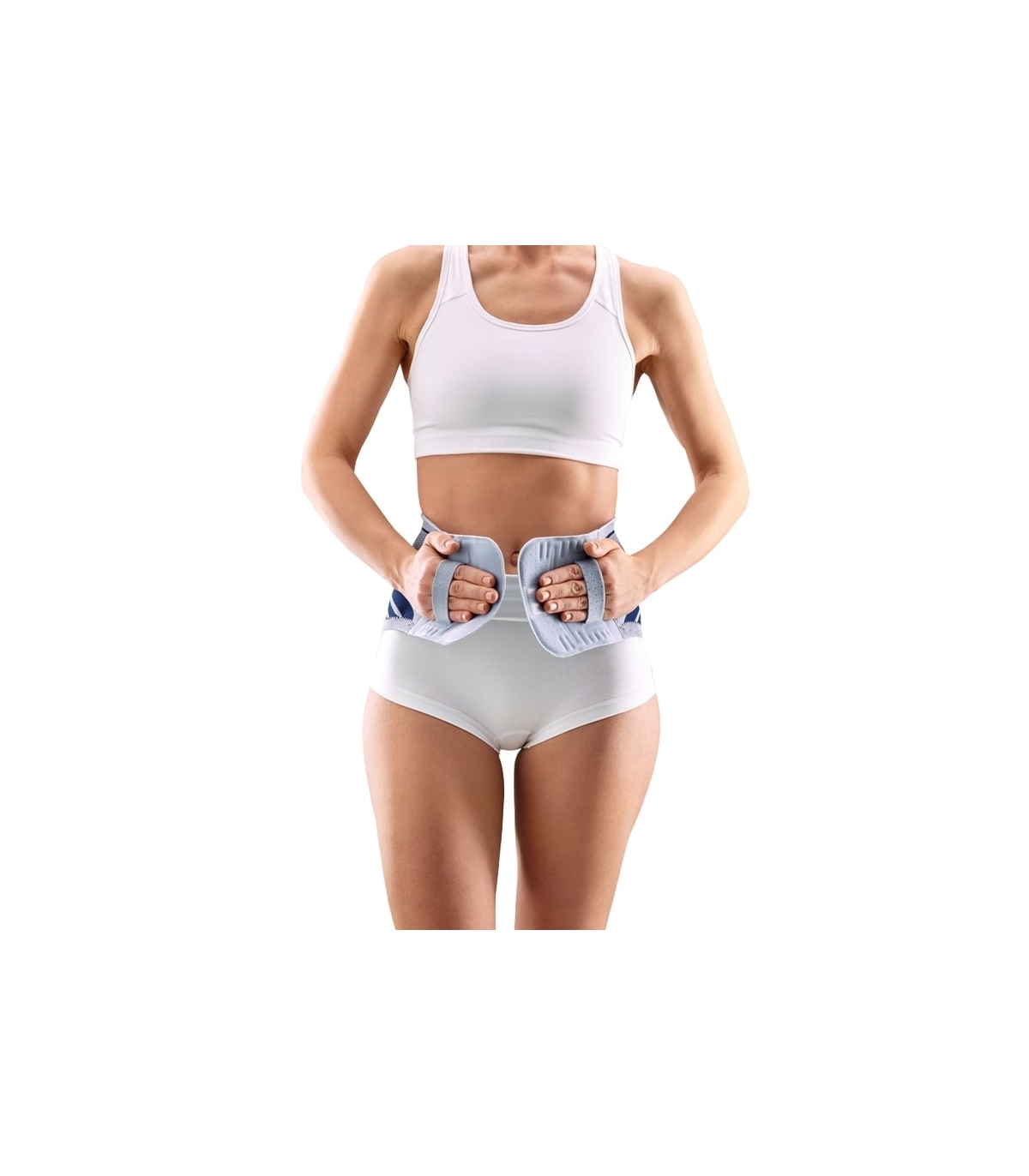 La ceinture lombaire LumboTrain Lady est facile à mettre en place grâce aux passe-mains ultra-pratiques.