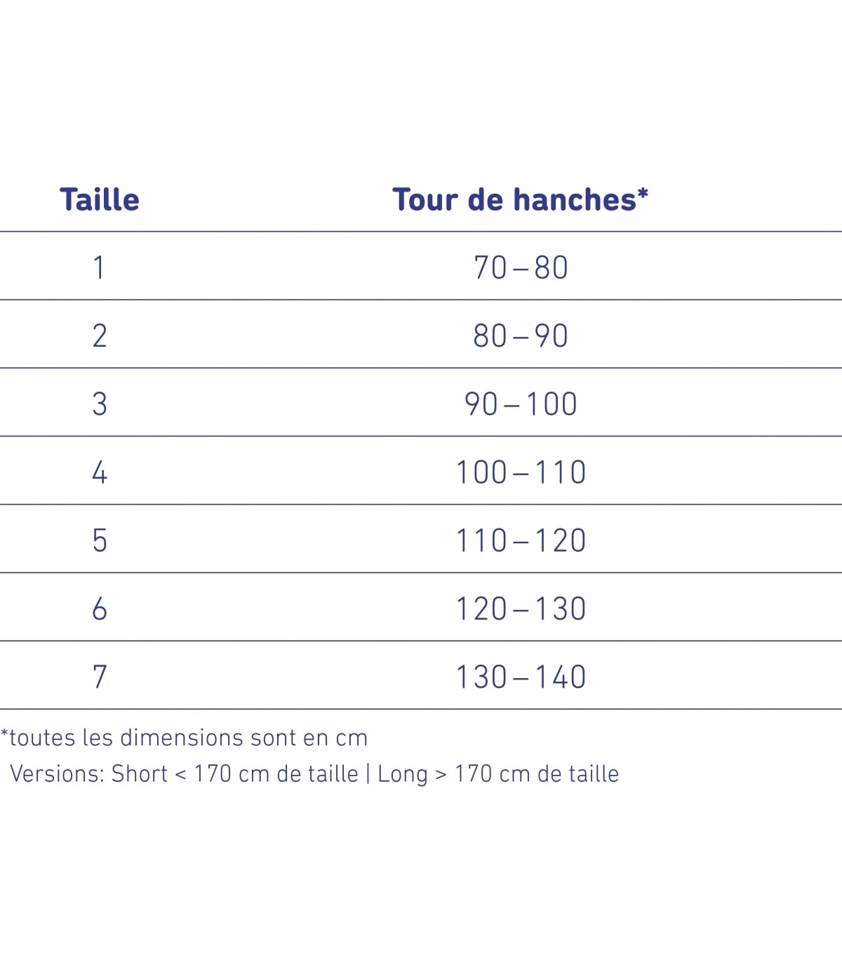 - Version "Long" > 170 cm de taille