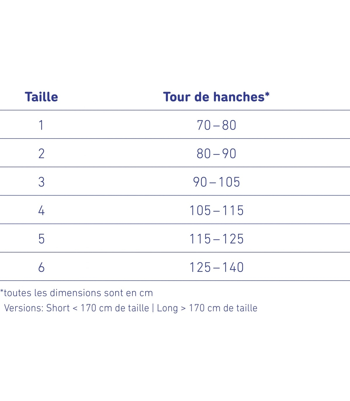 | Taille | Tour de hanches |