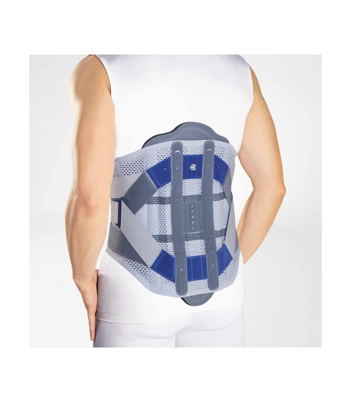 L'orthèse s'étend jusqu'au vertèbres thoraciques inférieures (jusqu'à TH 10) et protège des faux mouvements.