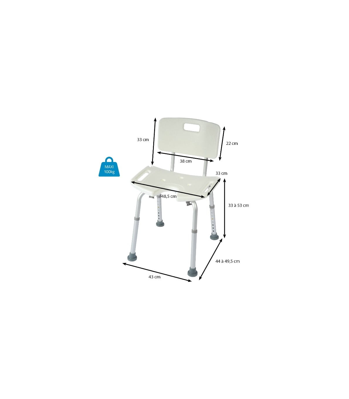 Chaise de douche médicale avec poignées New Bora