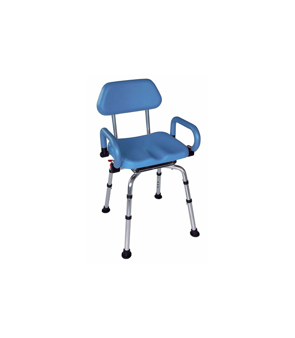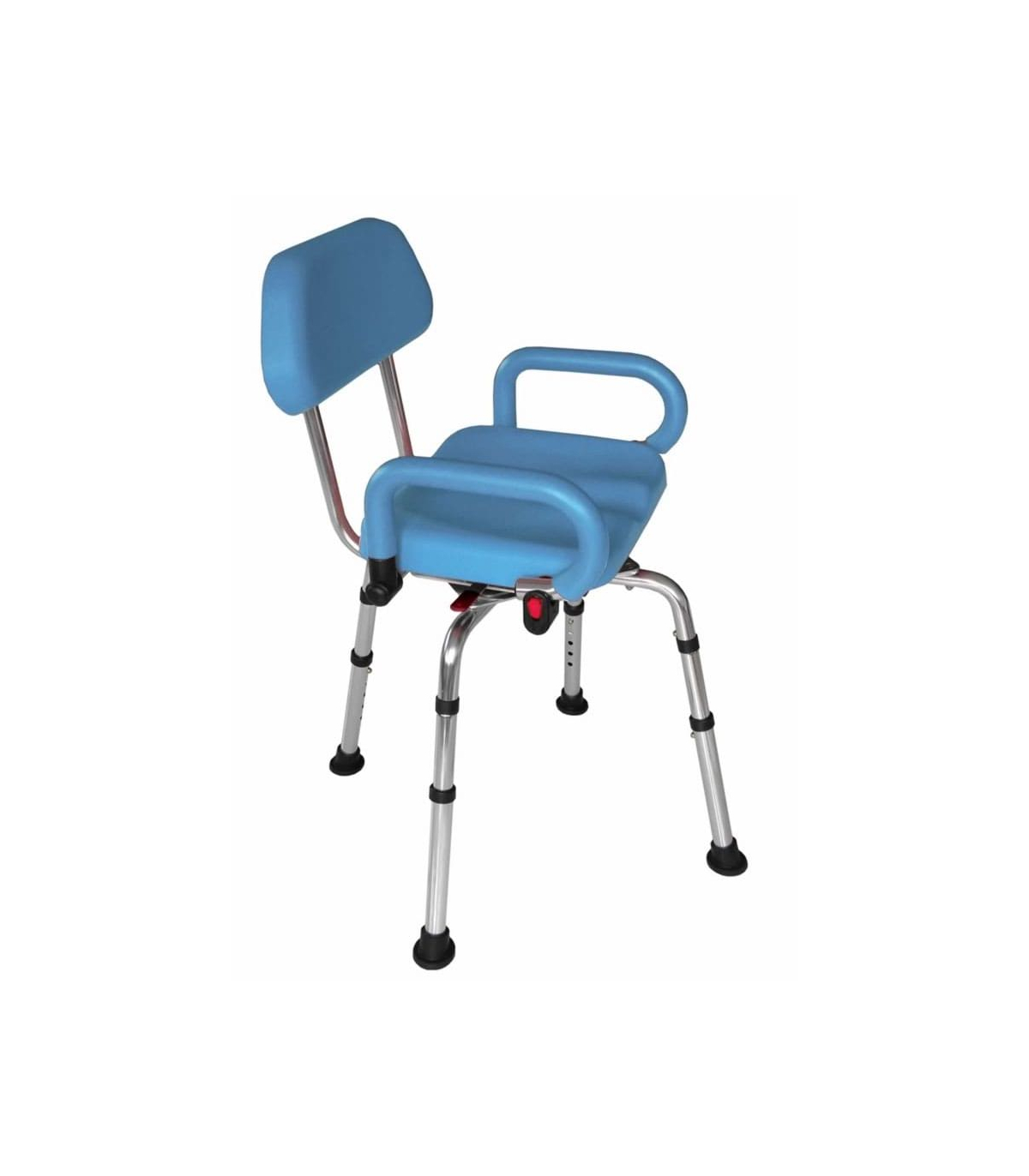 La particularité de cette chaise de douche Austra de la marque Drive Devilbiss est que celle-ci comporte une assise pivotante sur 360°, avec la possibilité de bloquer l'assise tous les 90°.
