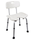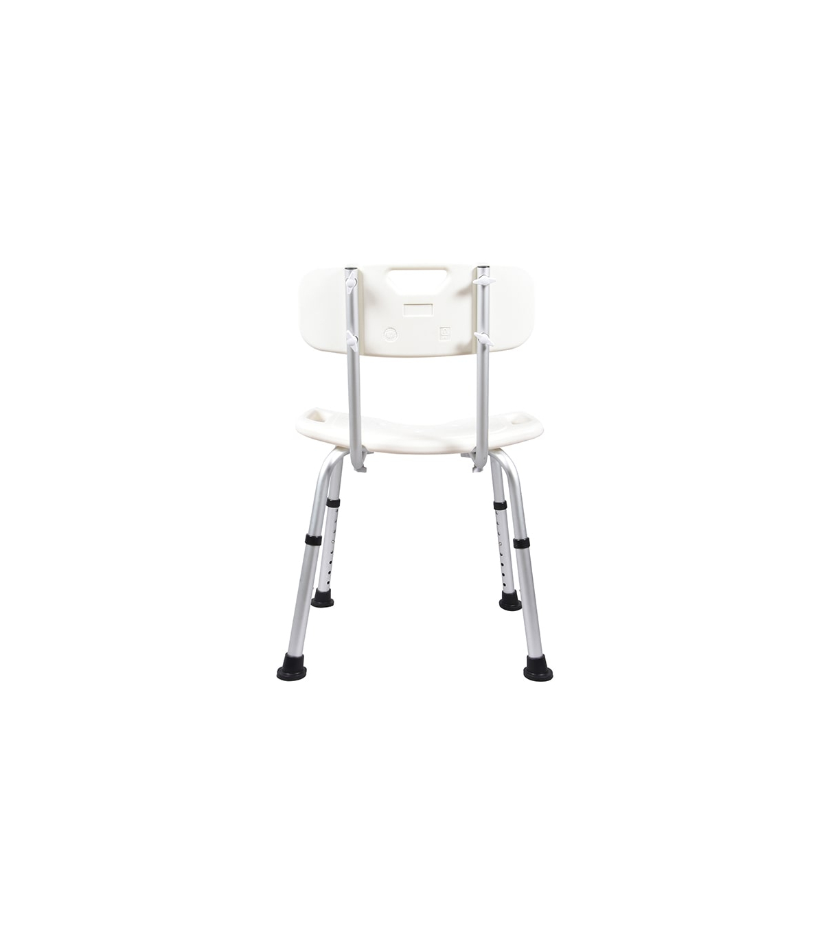 La chaise de douche Océane comporte une assise (dimensions lxpxh: 48,5 x 33,3 x 2,7 cm) et un dossier ergonomique (lxpxh: 41,5 x 2,5 x 17 cm) pour un maximum de confort.