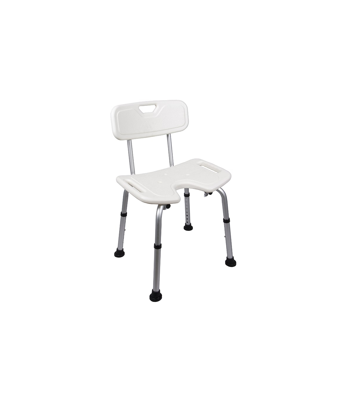 Pour faciliter la toilette intime de la personne, la chaise de douche dispose d'une découpe anatomique.