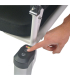 La version électrique de la chaise de douche roulante Moovy permet à la tierce personne de régler la hauteur d'assise sans effort de 44,5 à 64 cm. En effet, le fauteuil de toilette est équipé d'une commande montée/descente, installée directement sur le dispositif (sans télécommande). En outre, sachez que la chaise 4 roues Moovy est également proposée en version standard (la chaise de transfert, douche et WC à roulettes Moovy) et en version réglable par manivelle (le fauteuil de transfert douche et WC réglable par manivelle Moovy).