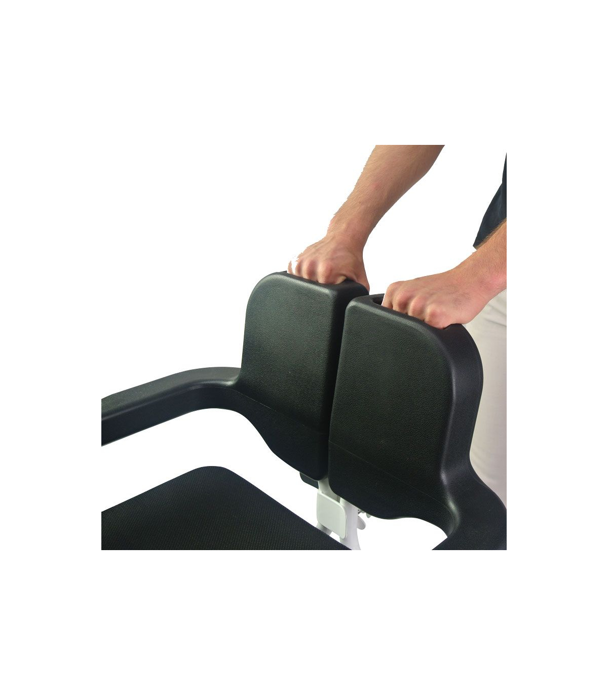 Il est également possible de replier les poignées du siège roulant pour faciliter l'accès au patient.