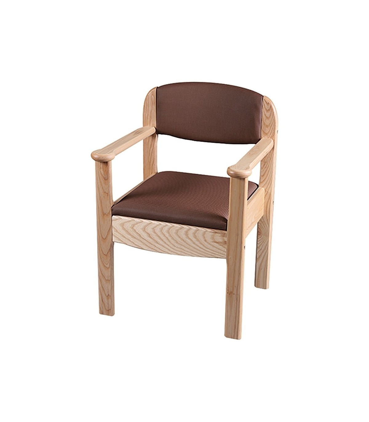 La chaise percée en bois Royale du fabricant France Rehab comporte des accoudoirs solides pour permettre au patient de se relever facilement.